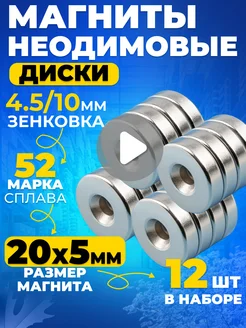 Неодимовый магнит диск 20х5 мм с зенковкой4.5 10, 12 шт