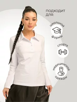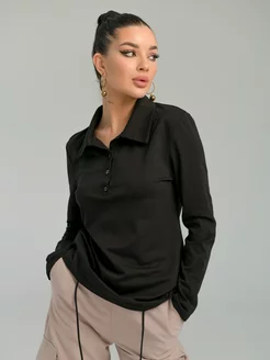 лонгслив поло однотонный базовый с вырезом воротником