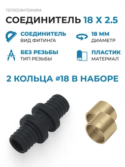 Муфта двухстороняя 18х2.5 (2 кольца в наборе)