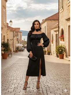 Платье крестьянка шелковое вечернее праздничное на завязках