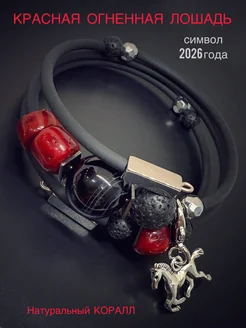 Браслет из натуральных камней с кораллом лошадь символ 2026