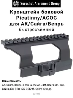 Кронштейн боковой Picatinny для АК Сайга Вепрь быстросъемный