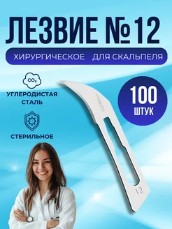 Лезвие для скальпеля №12, 100шт, хирургическое, стерильное
