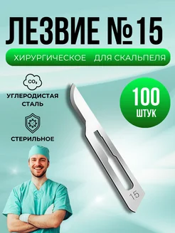 Лезвие для скальпеля №15, 100шт, хирургическое, стерильное