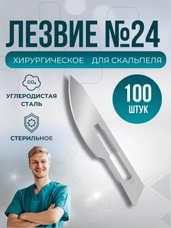 Лезвие для скальпеля №24, 100шт, хирургическое, стерильное