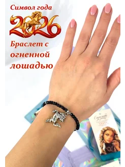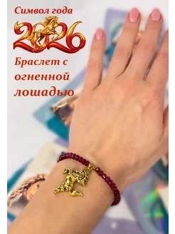 Браслет из агата с подвеской Лошадь символ 2026 года