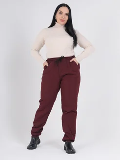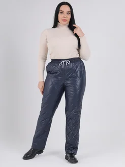 Утепленные брюки зимние на резинке прямые больших размеров