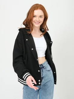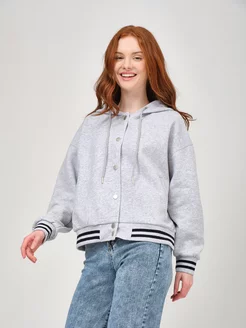 Бомбер оверсайз трикотажная без начеса с капюшоном