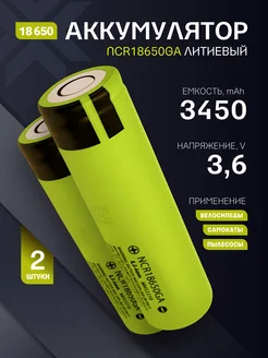 Аккумуляторы 18650 Li-ion батарейки 3.6 V 3,45Ач 10 A, 2 шт