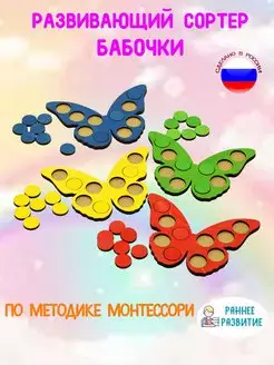 Сортер по цветам Бабочки деревянный Монтессори изучаем цвета