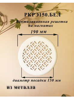 Решетка вентиляционная на магнитах РКРЭ150.БЕЛ (190 150 мм)