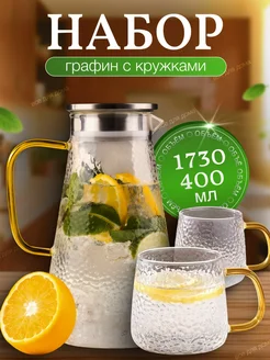 Кувшин с крышкой для воды стекло для напитков +2кружка