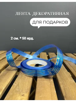Лента упаковочная для подарков синий 2 см