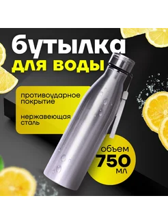 Бутылка для воды металлическая 750 мл, универсальная