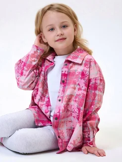 Рубашка в клетку оверсайз варенка розовая на кнопках