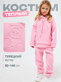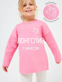 Лонгслив с начесом для девочки розовый оверсайз теплый