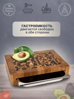 Торцевая разделочная доска с гастроемкостью 38x28x8 см