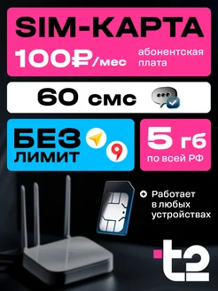 SIM-карта t2 5 ГБ + 60 смс + безлимиты