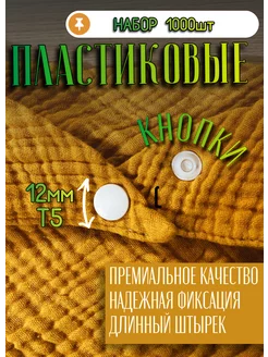 Кнопки пластиковые 1000шт Т5 12мм белые для одежды