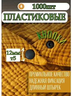 Кнопки пластиковые 1000шт Т5 12мм черные для одежды
