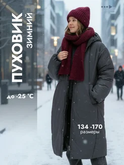 Пуховик зимний оверсайз длинный на молнии с капюшоном