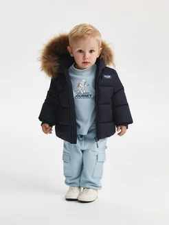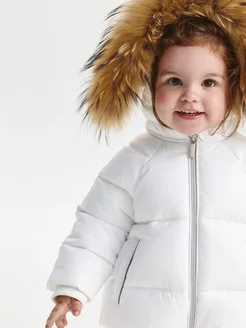 Куртка зимняя для девочки стёганая с капюшоном молочная