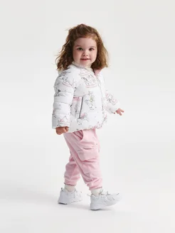 Куртка для девочки демисезонная стёганая молочная с рисунком