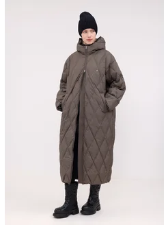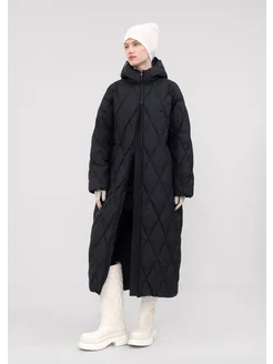 Утепленное пальто пуховик зимнее длинное с капюшоном