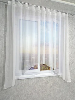 Тюль на кухню короткая вуаль белая арка 300х170 см