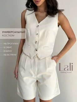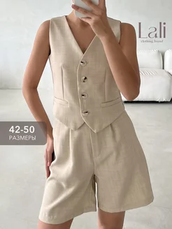 костюм льняной с жилеткой и шортами классический
