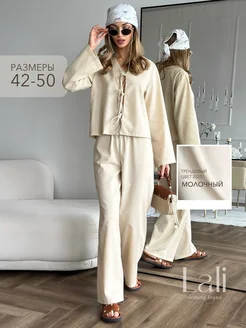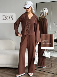 костюм женский льняной с брюками на завязках