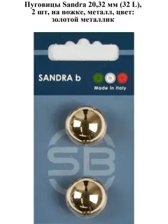 Пуговицы Sandra 20,32 мм (32 L), 2 шт, на прокол, металл, цв…
