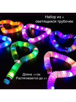 Трубочки антистресс Pop tubes Поп тубс 6 штук светятся