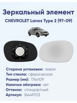 Зеркало CHEVROLET Lanos Type 2 (97-09) 16449703