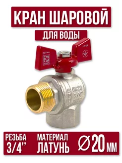 Кран шаровый для воды 3 4" г ш бабочка угловой латунный