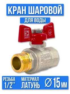 Кран шаровый латунный для воды 1 2 15 НН полнопроходной