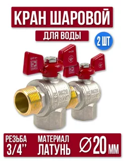 Кран шаровый для воды 3 4" г ш бабочка угловой латунный 2 шт