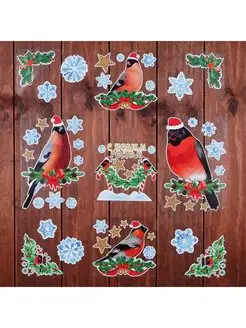 Набор наклеек на окна "Новогодний" снегири, 36 х 36 см
