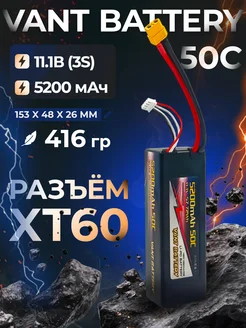 Аккумулятор Li-Po 11.1 В 5200мАч 50C 3S, разъем XT60