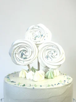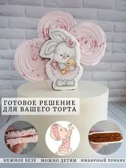 Безе на палочке и имбирный пряник Зайка. Топперы для торта