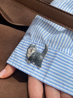 Брошь женская Серый кот