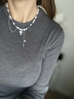 Чокер из натурального жемчуга и гематита