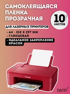 Самоклеящаяся бумага а4 для принтера прозрачная 10 листов