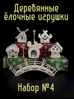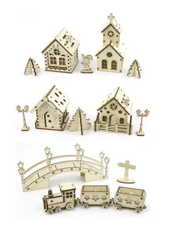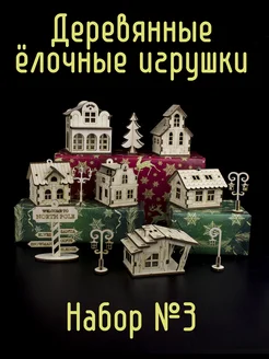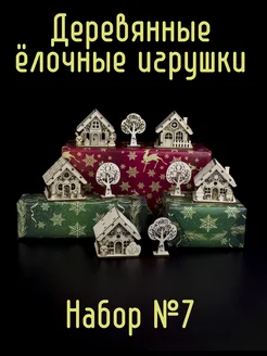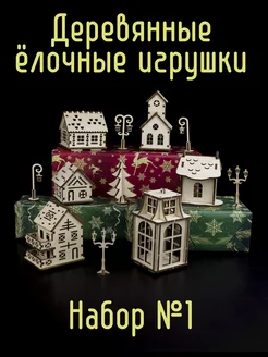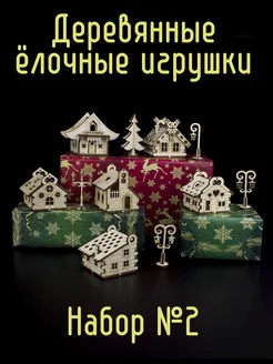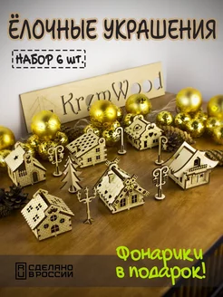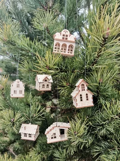 Новогодние елочные игрушки из дерева Домики 6 шт