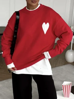 Свитер оверсайз с сердцем красный