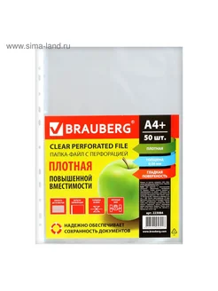 Файл-вкладыш А4 60 мкм, BRAUBERG, плотные, гладкие, 50 штук