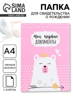 Папка для свидетельства о рождении для девочки "Мишка", под