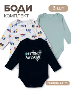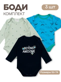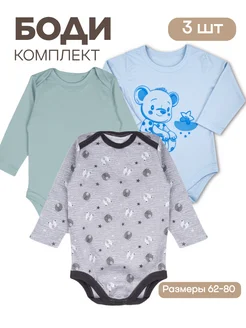 Комплект боди для новорожденных из 3 шт с длинным рукавом