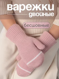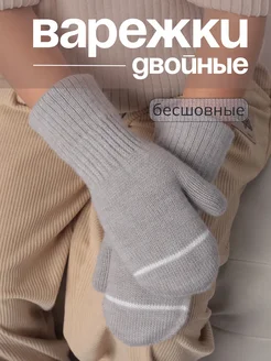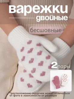 Варежки двухслойные шерстяные теплые, зимние 2 пары