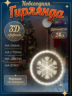 Новогодняя светодиодная круглая гирлянда Снежинка